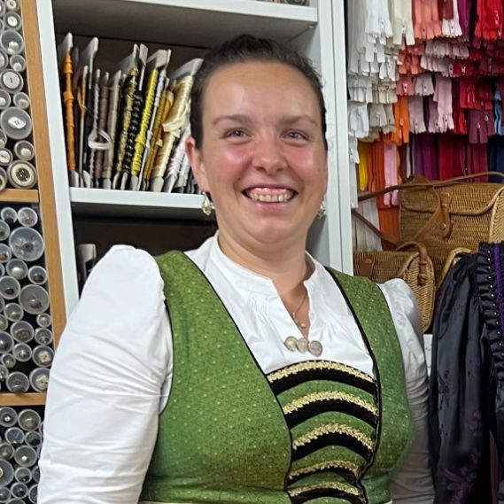 Seit zwei Jahren führt Katharina Turger die Abteilung. Die zweifache Mutter ist Maßschneidermeisterin und legte ihren Meisterabschluss in Tracht ab. Für sie ist es Freude und Verpflichtung zugleich, Tradition lebendig zu halten. Besonders stolz macht sie der Zusammenhalt: „Wenn was ansteht, dann packa alle mit o.“